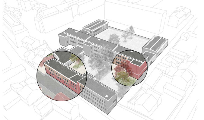 - La création de trois EAS aux étages, sur les paliers du bâtiment élémentaire